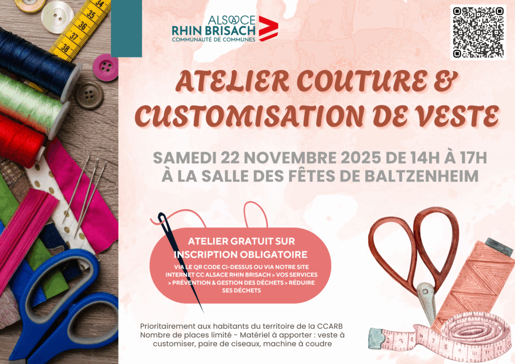 Le service Prévention et Gestion des Déchets de la Communauté de Communes organise un atelier couture "customisation de veste".