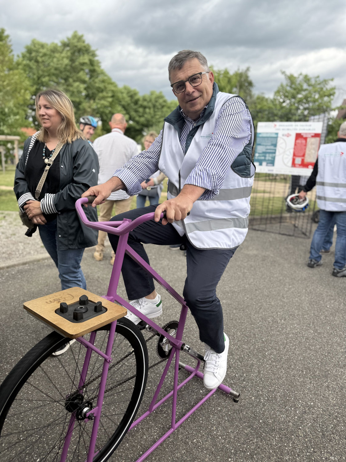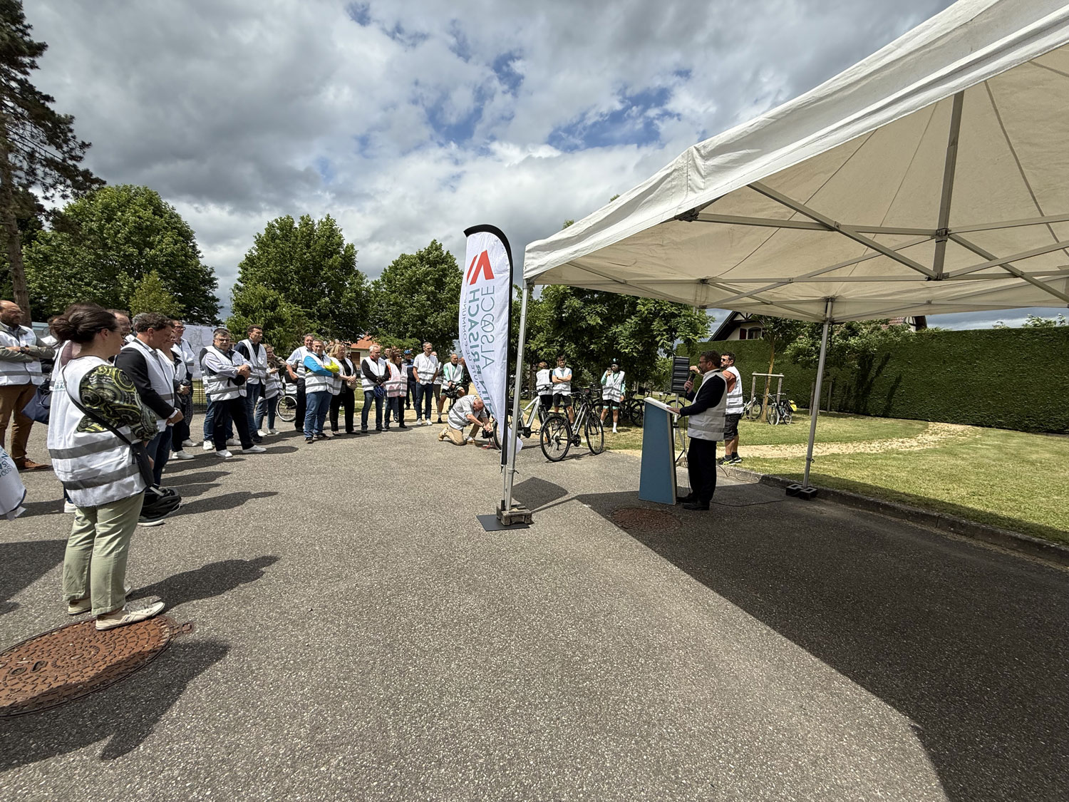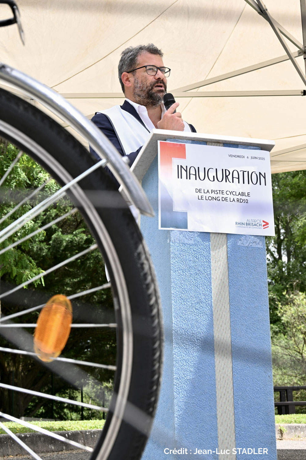 Vendredi 6 juin 2025, Gérard HUG, Président de la CC Alsace Rhin Brisach et Thierry SAUTIVET, Vice-Président Tourisme, pistes cyclables et SIG et Président de l’OT ARB ont inauguré le tronçon de piste cyclable réalisé le long de la RD 52 et desservant les grandes entreprises de la ZIP Nord.
